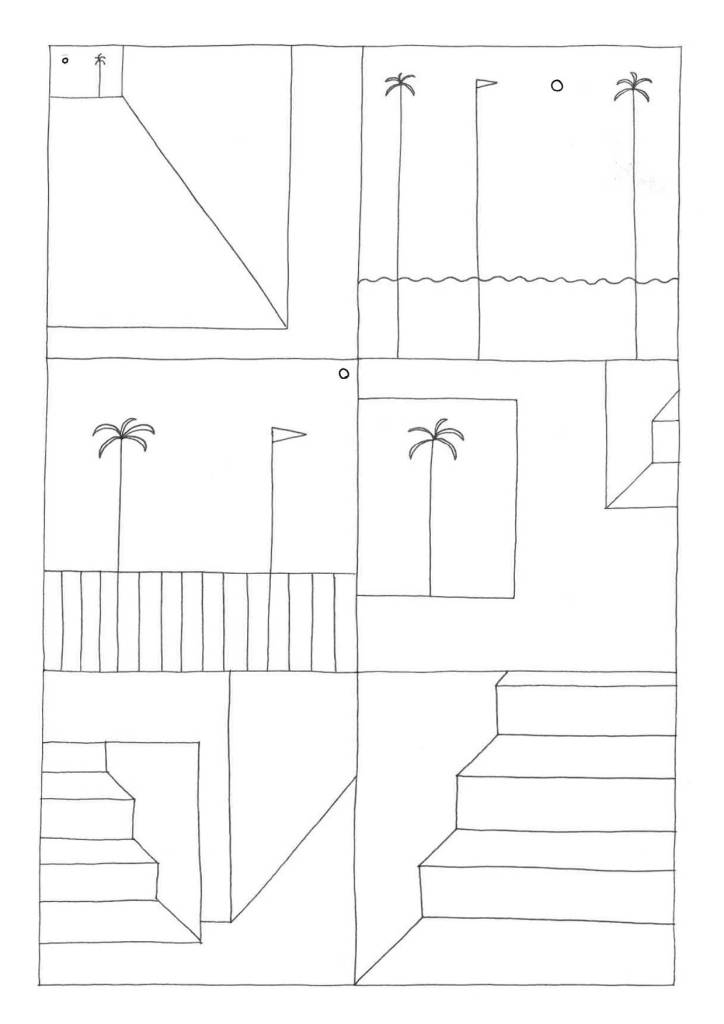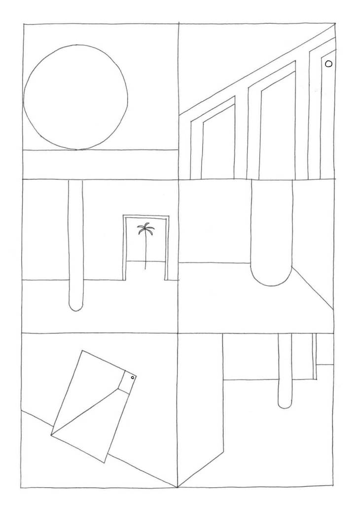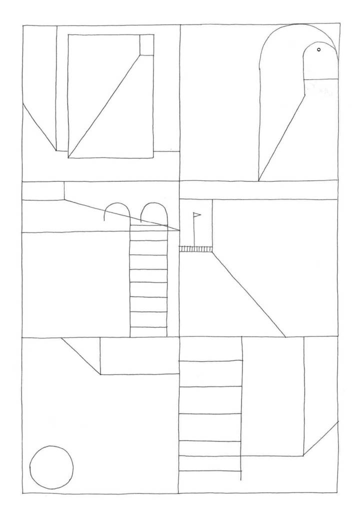 With this short series of drawings, I explored the edge between the construction of a drawing, the representation of space, and the suggestion of a narrative. Fighting against a personal tendency toward accumulation, stratification, and disorder, here I tried to move toward a form of graphic (and narrative) minimalism, as if to understand the minimum threshold from which I could start.