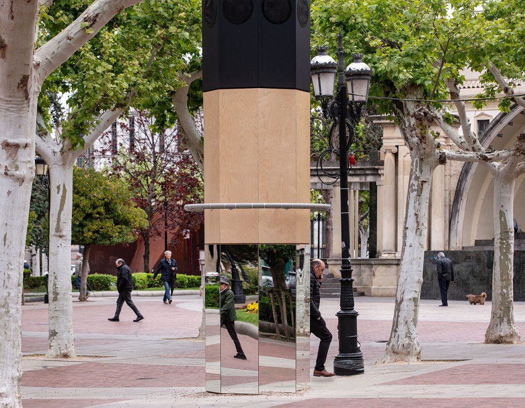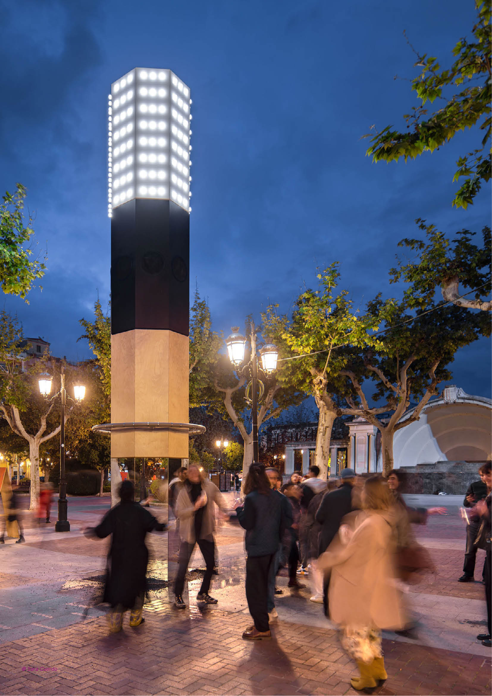 Starting from an anecdotal observation, our project appropriates this void, this anomaly becomes our opportunity. A Palo de Mayo takes its place, it’s the point of convergence of all the existing urban situations nearby; like a synthesis of the ingredients that make up this urban fragment. The freshness of the fountain at the Monumento al general Espartero, the soundscape of the Concha, the shifting lights of the peripheral roads. The verticality and materiality of the Palo de Mayo is on the same scale as the city.