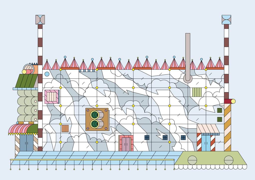 A nomadic building with chameleon-like properties: as it moves, it transforms into whatevere surrounds it.